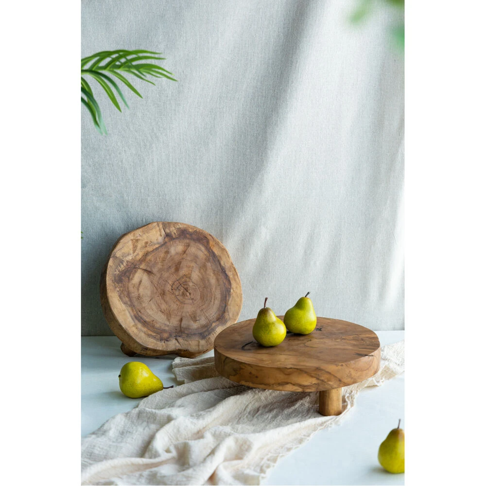 Versatile and perfect for decoration, the Set of 2 Teak Footed Round Trays can serve a number of functions throughout your home. Made from 100% teak root, these trays possess a unique appearance and build. Use these modern decorative trays to accent trinkets or picture frames throughout your home.