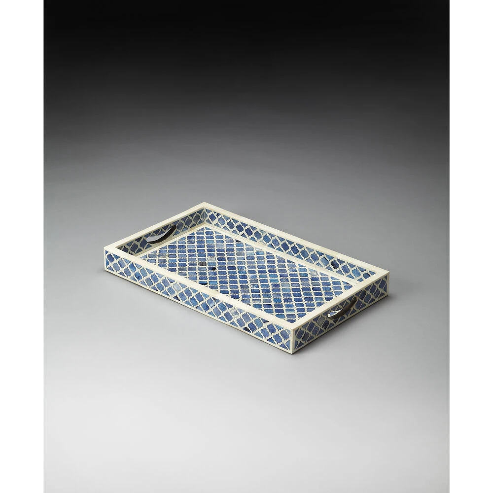 Butler Specialty Company Meknes Bone Inlay Serving Tray, Blue
