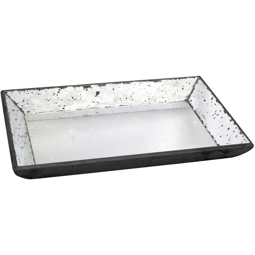 Let this Rectangular Glass Tray with antiqued frame reflect vintage glamour throughout your home. Use as a serving tray at an elegant gathering or display with candles to a create stunning centerpiece. For added versatility, this mirrored tray may also be hung in an entryway or master bath. This tray offers a modern feel that enables it to blend stylishly into a variety of decors.