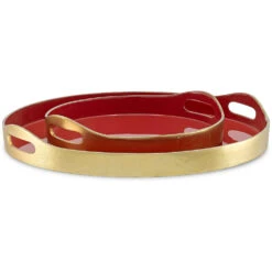 Made of cast aluminum, the interiors of the Riya Red Tray Set has been treated to a rich red finish while the exterior is covered in a luxuriant gold. Though this would be the perfect tray for serving champagne during happy hour, the design is so stellar, you may want to leave it to its own devices in the middle of a table or on the corner of a counter. We offer the Riya in several finishes.