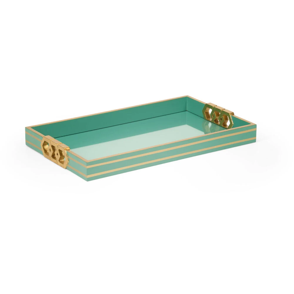 A Generous Serving Tray Offering A Vibrant Color Palette For The Gracious Host, With Metallic Satin Gold Interlocking Honeycomb Pattern And Gold Pinstripe Detail.