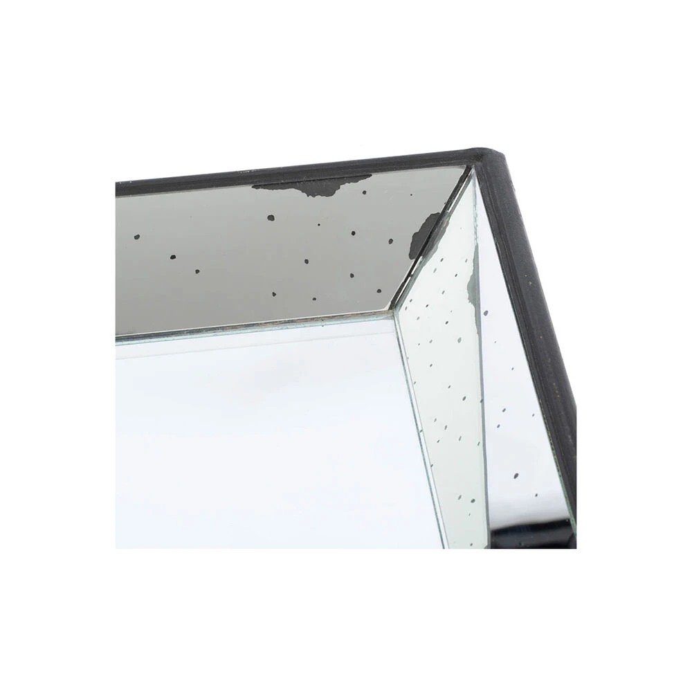 Let the large Waverly Mirrored Square Tray with antiqued frame reflect vintage glamour throughout your home. Use this piece as a serving tray or display with candles to create a stunning centerpiece. For added versatility, this tray may also be hung in an entryway or master bath. The square frame gives the piece a slightly modern feel that enables it to blend stylishly into a variety of decors.
